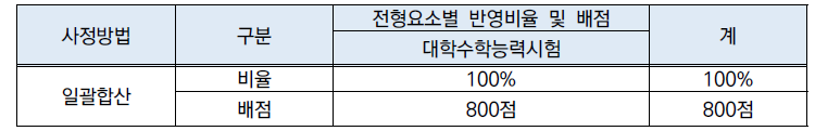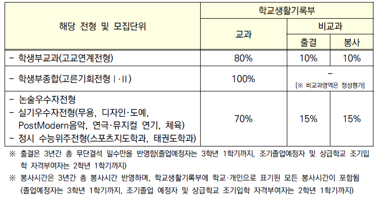 ※ 수시모집 학생부종합(네오르네상스전형) 및 학생부종합(특성화고졸재직자전형)은 학교생활기록부의 교과 성적을