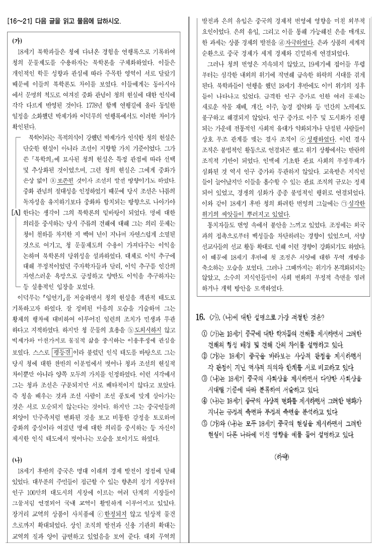 【예시 문항 1】 국어 16~21번 세트의 지문과 문항
