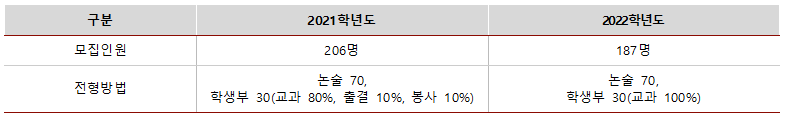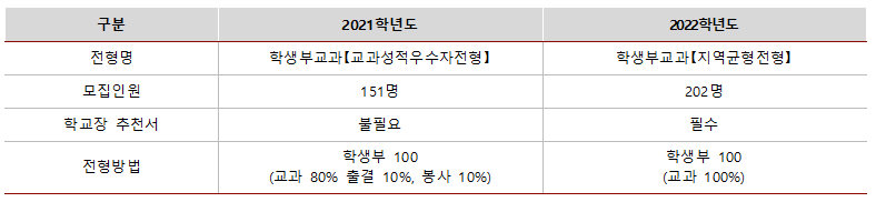 ※ 2021학년도 수시모집 비율 : 62% → 2022학년도 수시모집 비율 : 60.1%