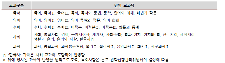 가. 반영 교과목 중 지원자가 이수한 전 과목을 반영함