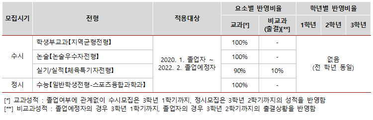 2. 수능 활용영역 및 반영비율