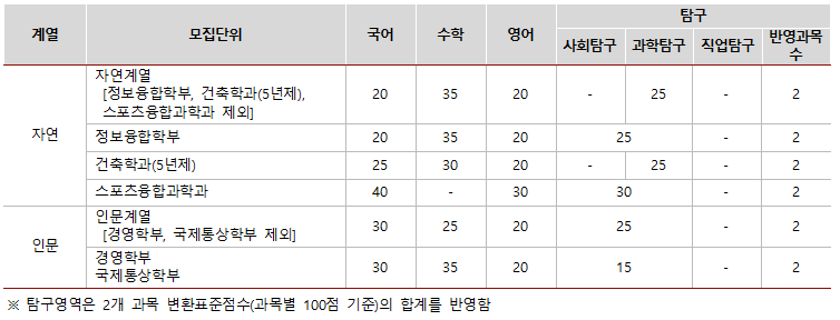 대학수학능력시험 반영 방법