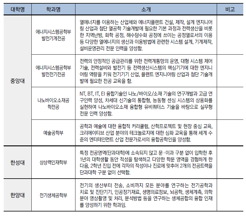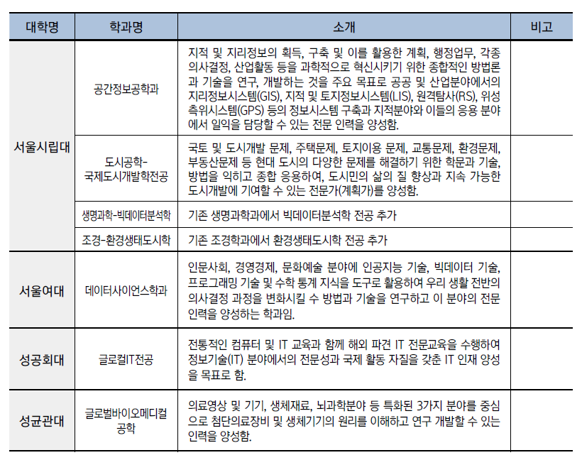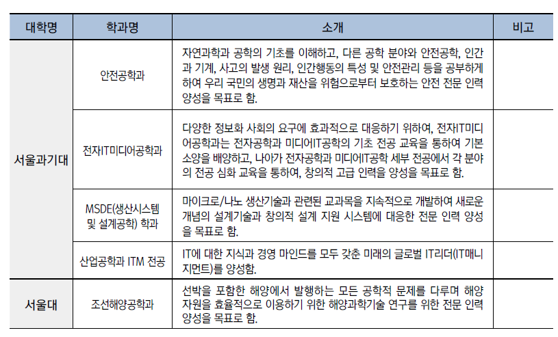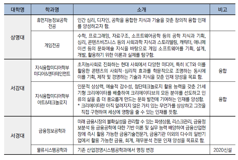 수도권 대학의 이공계 학과를 중심으로 최근 몇 년 이내에 신설되었거나 명칭이 변경된 학과와 많이 알려지지 않은 학과를 소개합니다.