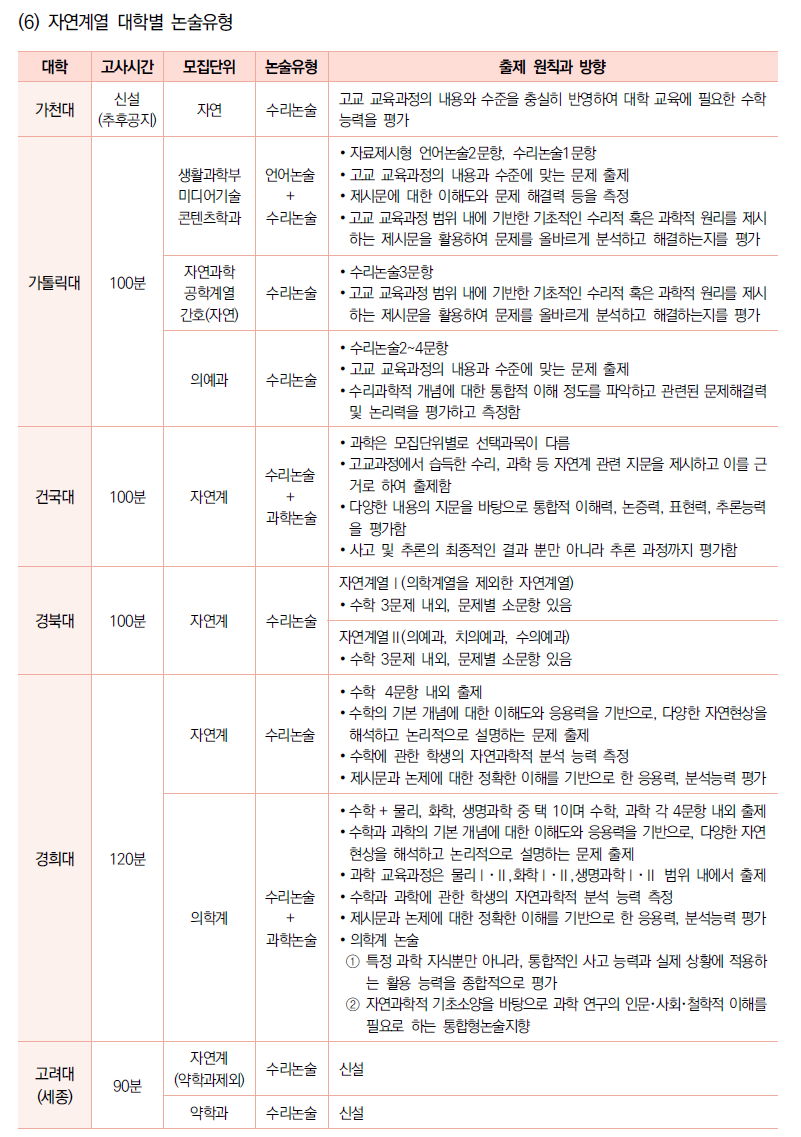 (6) 자연계열 대학별 논술 유형