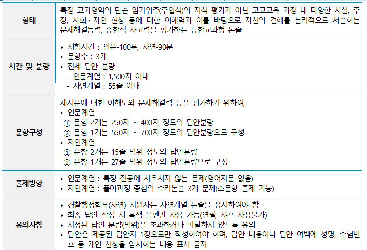 ▸ 평가기준 : 제시문과 문제에 대한 이해력, 문제에서 요구하는 답안작성능력(문제해결력), 지식의 풍부함과 사고의