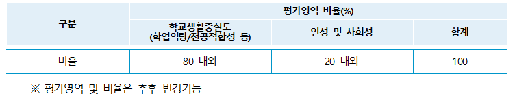 2) 평가내용 : 서류 내용을 기반으로 발전가능성, 전공·전형취지 적합성, 인성 등을 종합평가