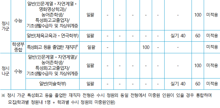 (본교 모집단위 기준 인문계열(영화영상학과 포함) 4명 이내, 자연계열 4명 이내)