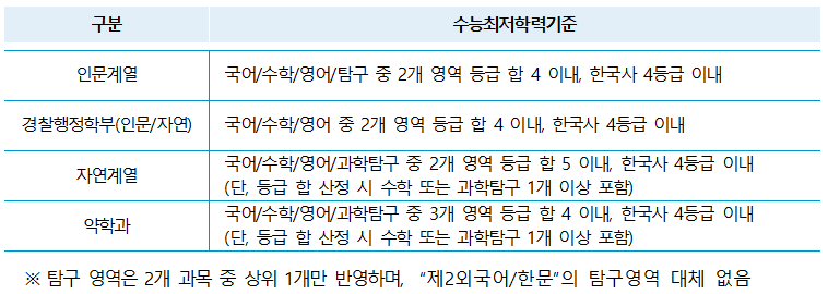 ▸ 우리대학이 요구하는 해당연도 대학수학능력시험 최저학력기준을 갖춘 자