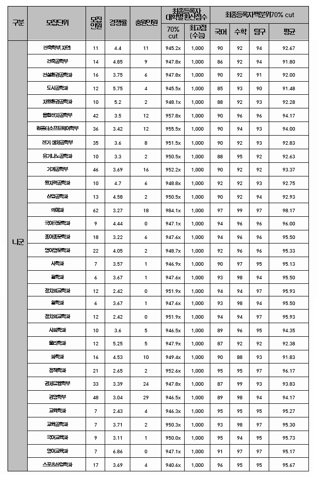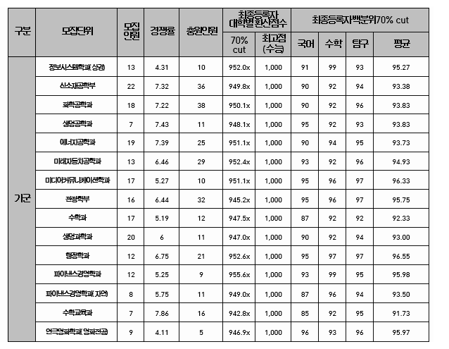 한양대학교 정시 전형 결과
