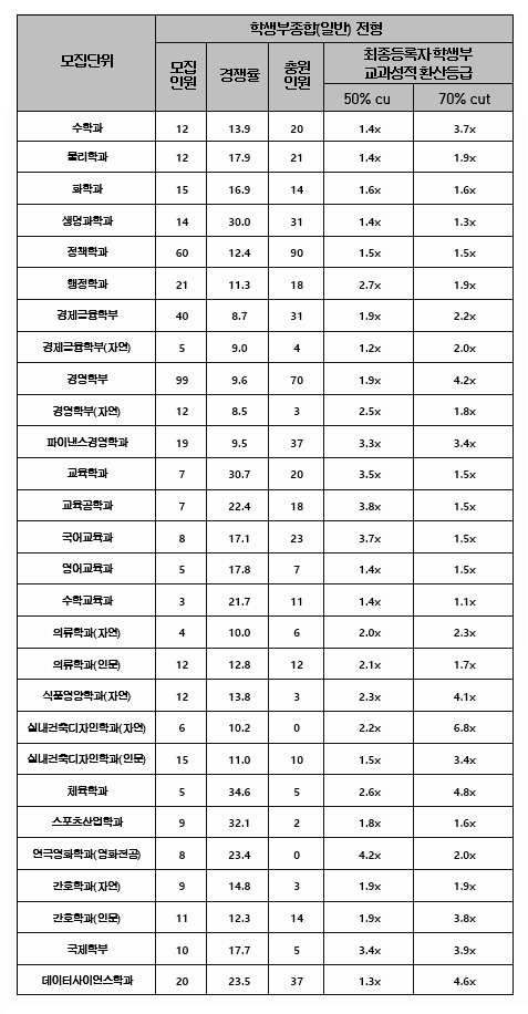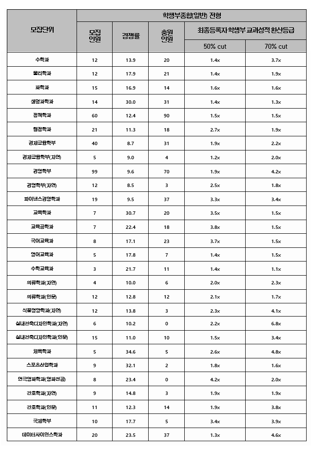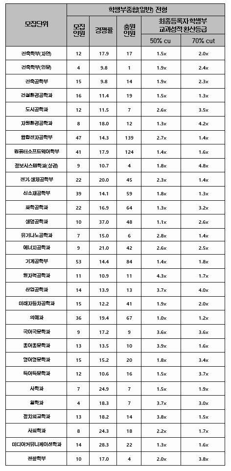 한양대학교 학생부종합(일반) 전형 결과