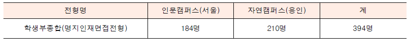 ※ 인문사회계열: 인문대학, 사회과학대학, 경영대학, 법과대학, 전공자유학부(인문), 융합전공학부(인문), 미래융합대학, 건축대학 공간디자인전공