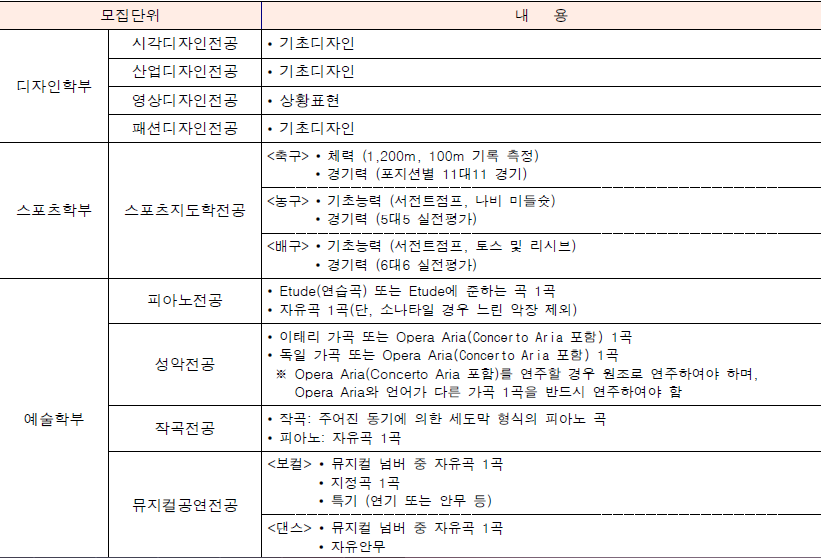 명지대학교 2022학년도 실기/실적 (실기우수자전형)