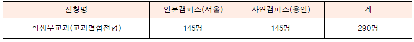 ※ 인문사회계열: 인문대학, 사회과학대학, 경영대학, 법과대학, 전공자유학부(인문), 융합전공학부(인문),