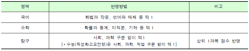 - 반영교과별 이수과목이 4과목 미만일 경우 반영교과 내 이수한 과목 모두 반영