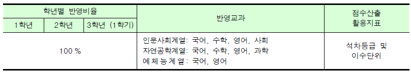 ※ 반영교과 내 석차등급이 표시되지 않는 과목은 반영하지 않음(단, 학생부교과(특성화고교전형) 제외)