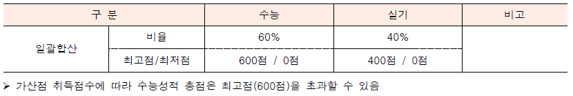 ※ 가산점 취득점수에 따라 수능성적 총점은 1,000점을 초과할 수 있음