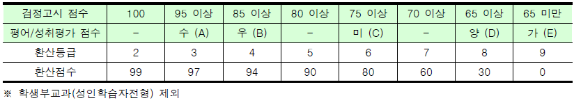 나. 학생부 교과성적 대체 점수 (대상자: 검정고시 합격자 및 석차등급 반영 불가능자)