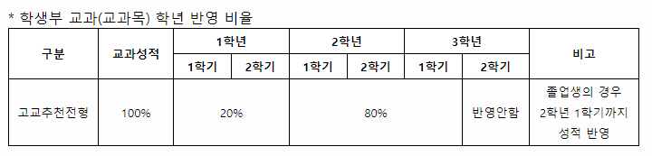 - 학생부 교과(교과목) 학년 반영비율