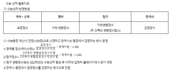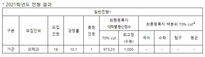 - 아주대학교 2021학년도 학업우수자전형 결과