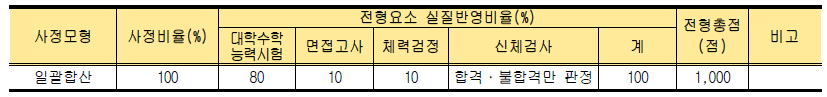 ※ 대학수학능력시험 성적 적용 2개 영역을 반드시 응시해야 함(미응시 경우 불합격 처리).
