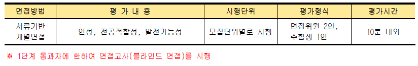 ※ 학생부종합(고른기회전형, 특성화고 등을 졸업한 재직자전형, 특수교육대상자전형)은 서류평가 100%로 선발함.