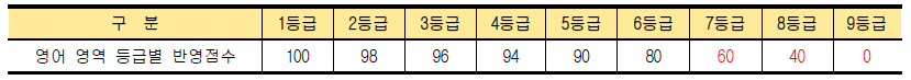 2) 영어 영역은 등급을 점수로 변환하여 반영함.