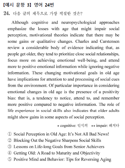 - 학교 현장의 실제 영어 사용 상황에 긍정적인 영향을 끼칠 수 있는 문항을 출제하였다