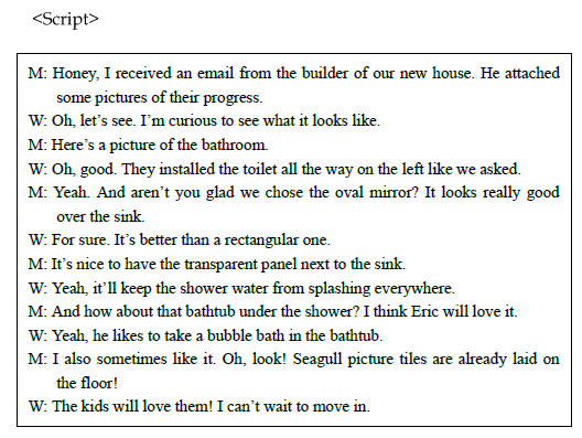 듣기는 원어민의 대화 담화를 듣고 이해하는 능력을 직접 측정하고 말하기는 불완전 대화 담화를 듣고 적절한 의사소통 기능을 적용하여 이를 완