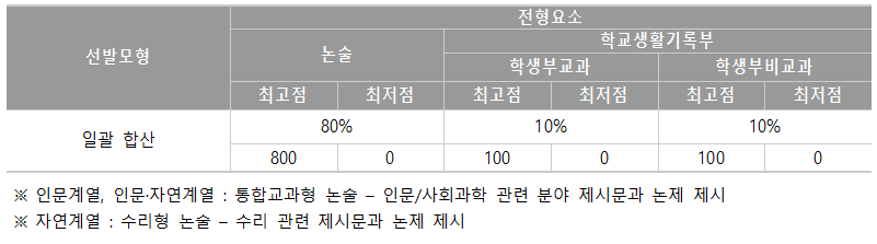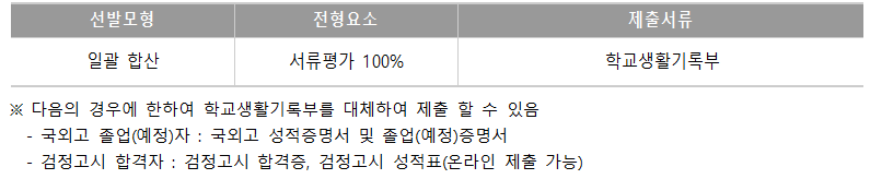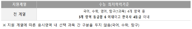 - 대학수학능력시험 최저학력기준: 적용하지 않음