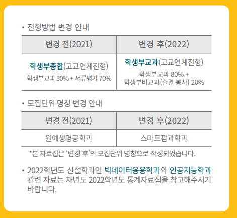 - 학교장 추천전형: 고교별 최대 6명 추천 가능(인문계열 2명, 자연계열 3명, 예술체육계열 1명)