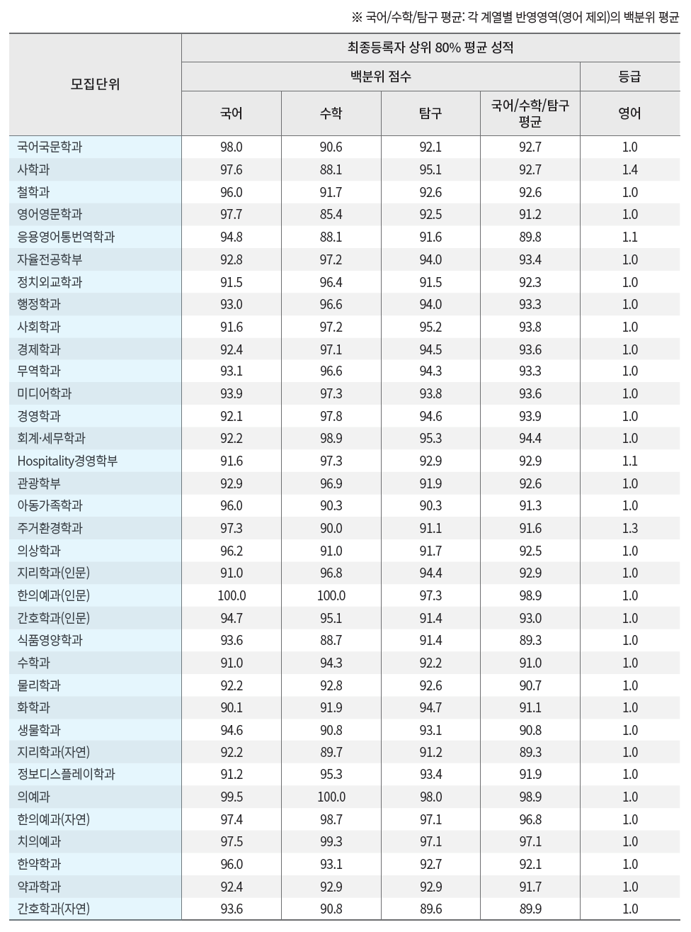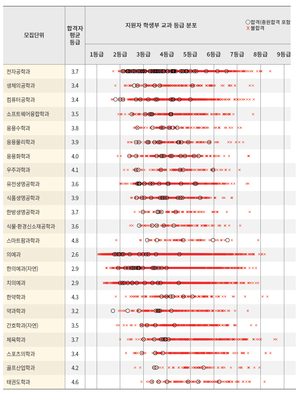 - 수능최저학력기준을 충족한 자 중에서 학생부교과 80%와 학생부비교과(출결,봉사)20%를 합산하여 총점 순으로 선발