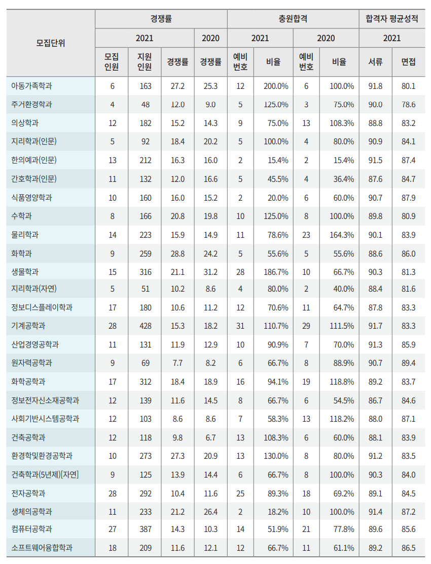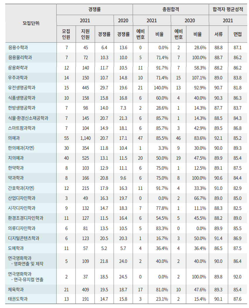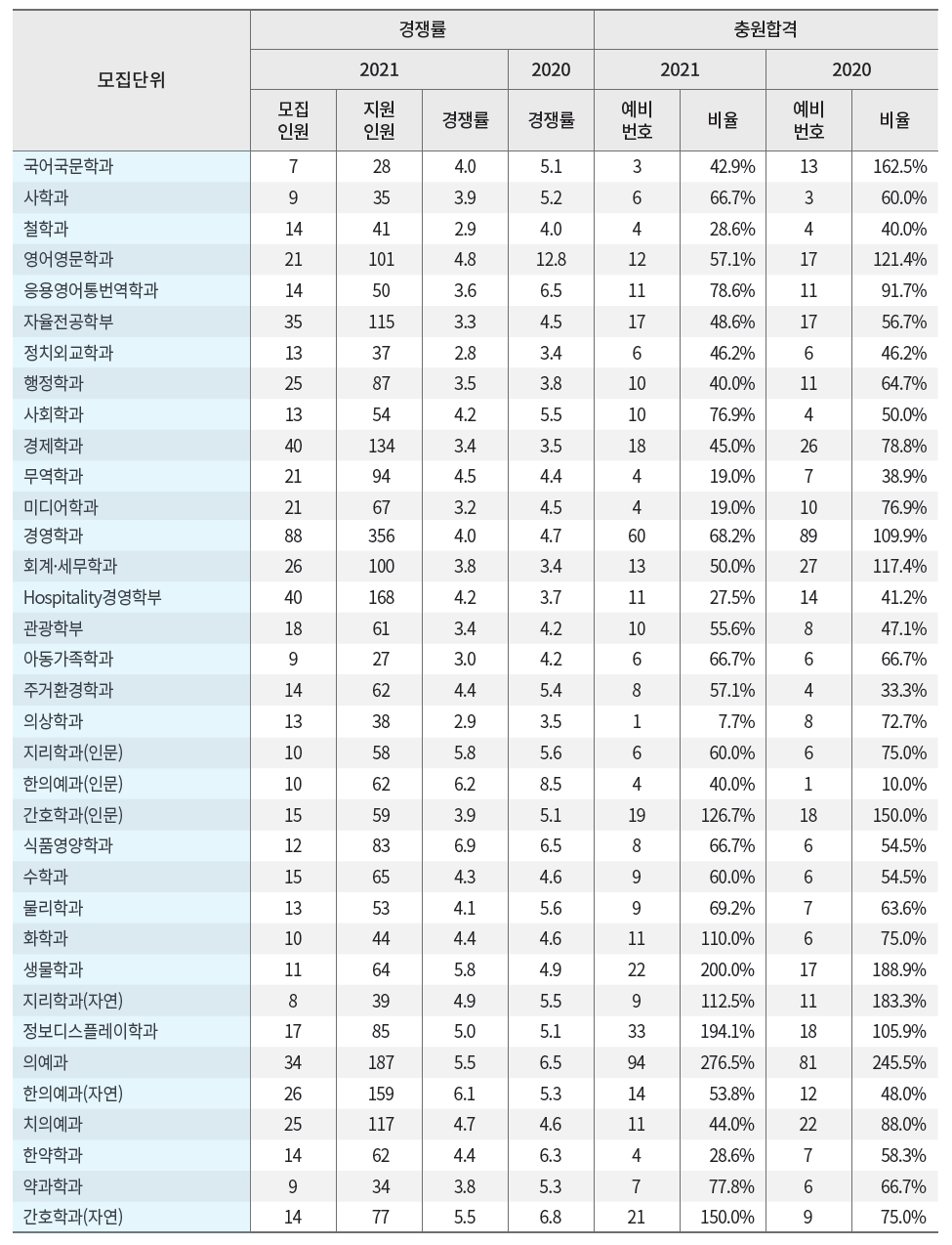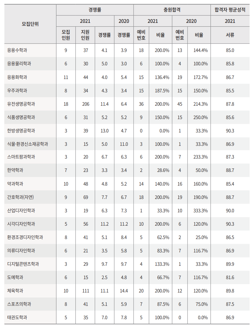 2021학년도 경희대학교 학생부종합 교과연계전형 입시결과