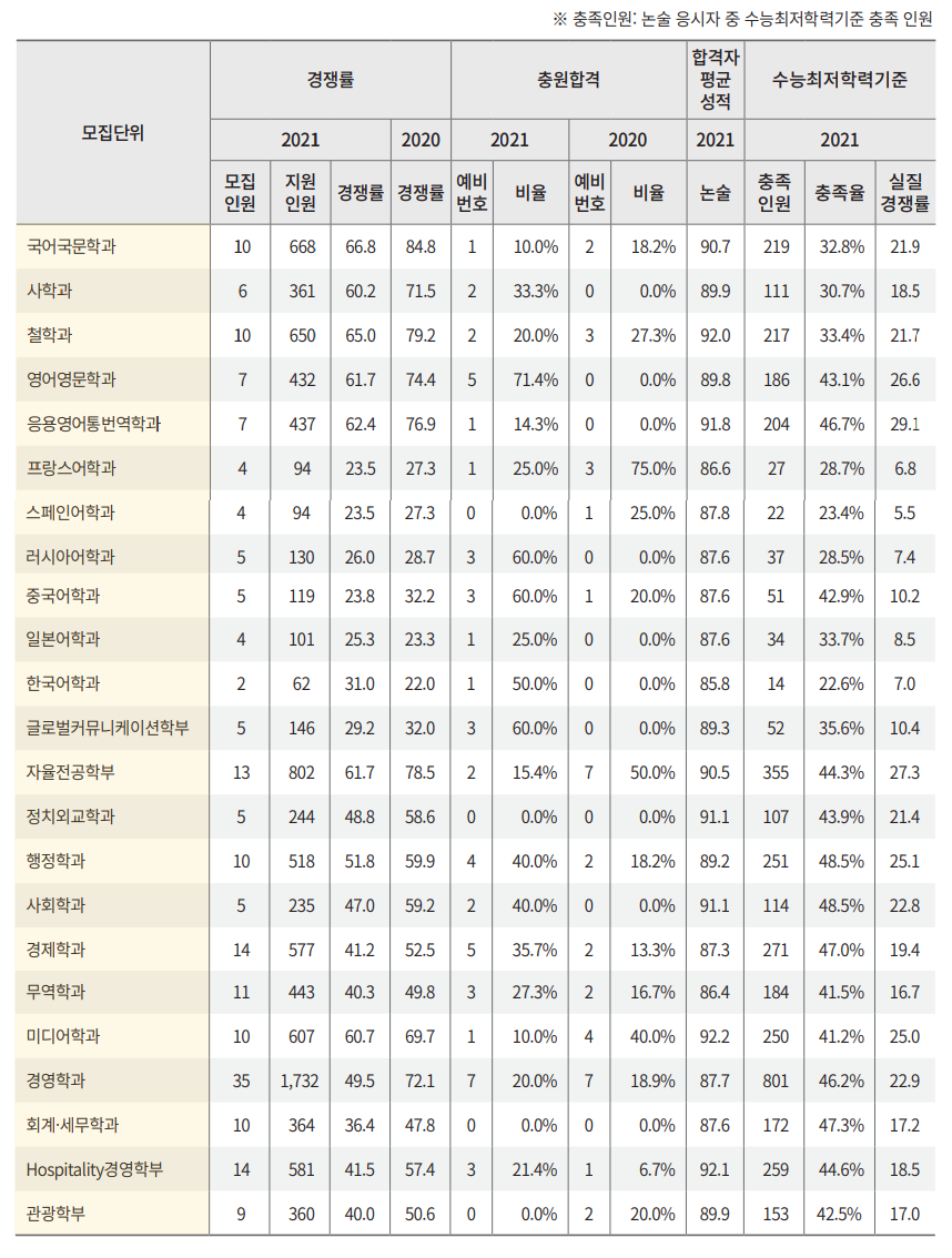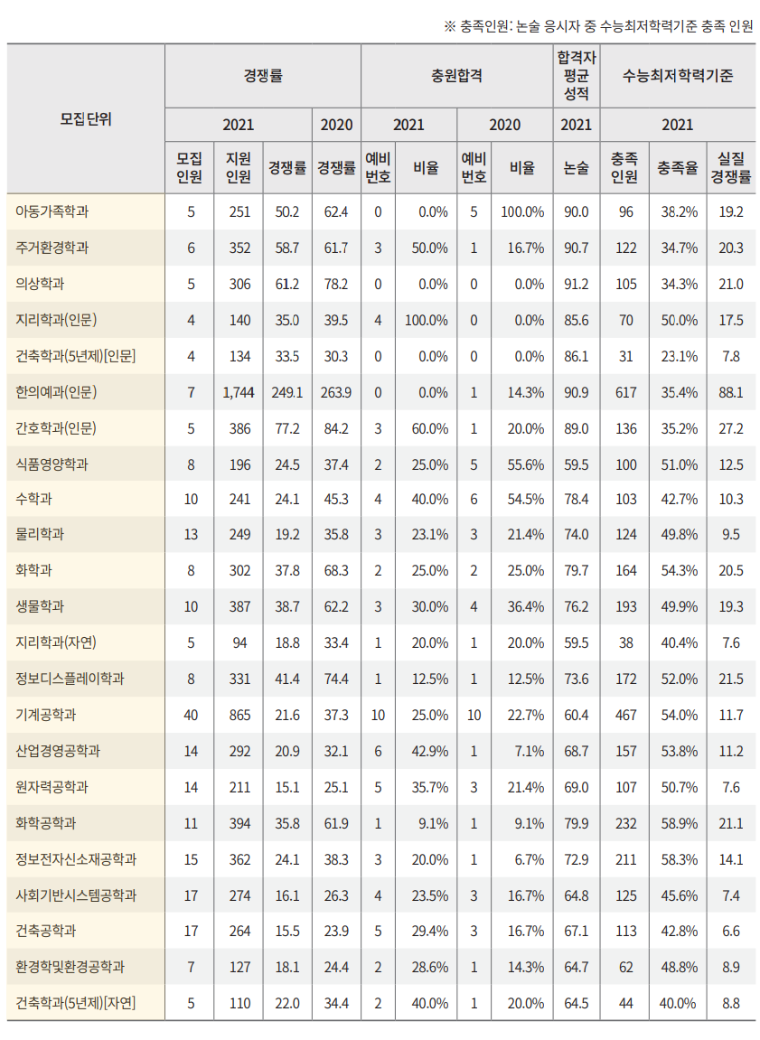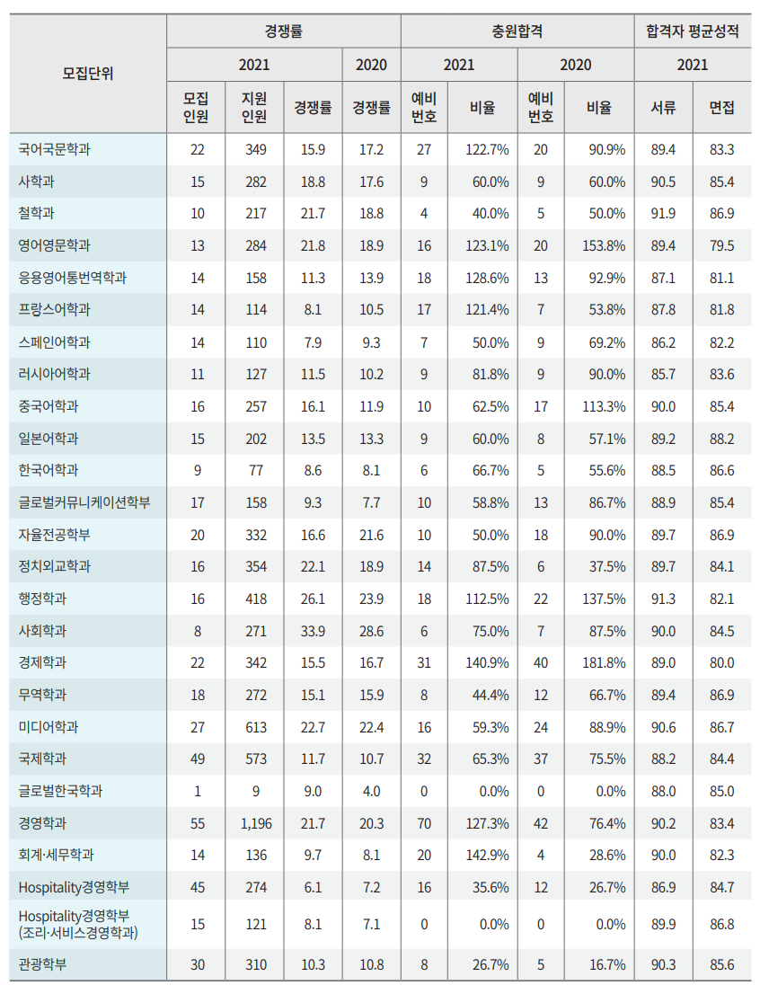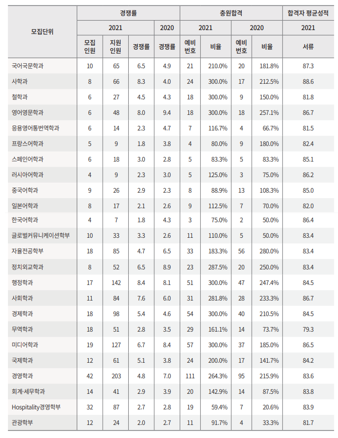 2021학년도 경희대학교 학생부종합 교과연계전형 입시결과