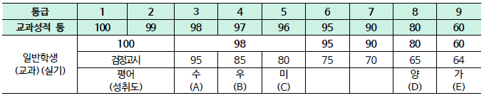 - 본교에서 요구하는 학교생활기록부 교과성적이 있는 자