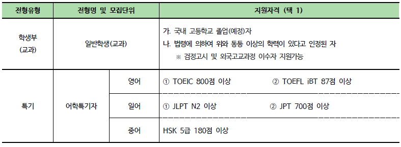 ※ 공통조건 : 당해 연도 대학수학능력시험 응시 예정인 자