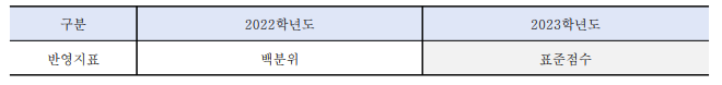 1. 정시모집 대학수학능력시험 반영지표 변경