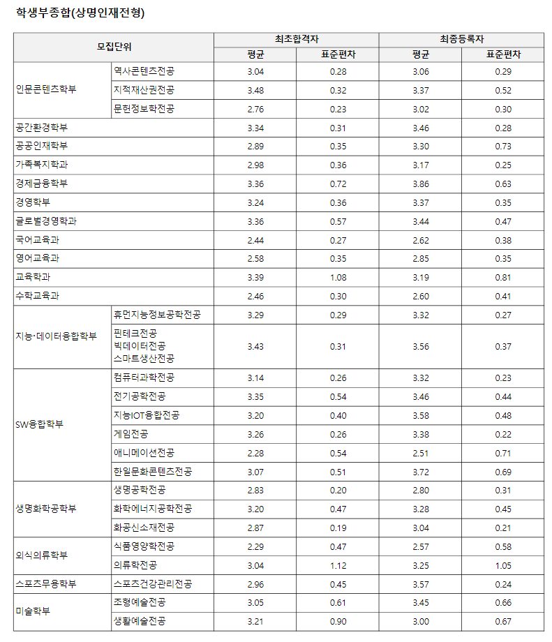 - 서류평가: 학생부종합(상명인재전형/고른기회전형/특성화고 등졸업한 재직자전형/특수교육대상자전형)