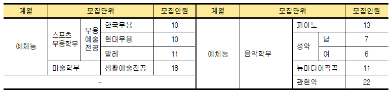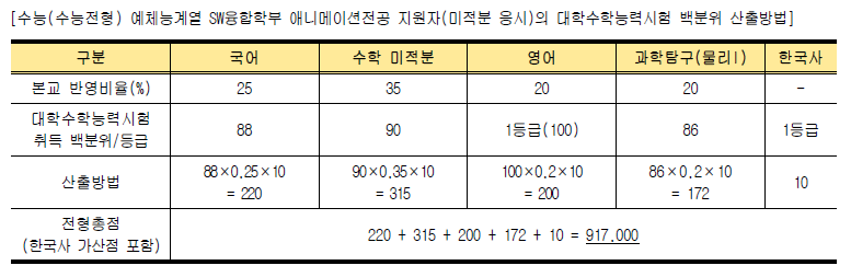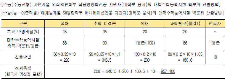 * 대학수학능력시험 성적 적용 2개 영역 미응시자의 경우 불학격 처리