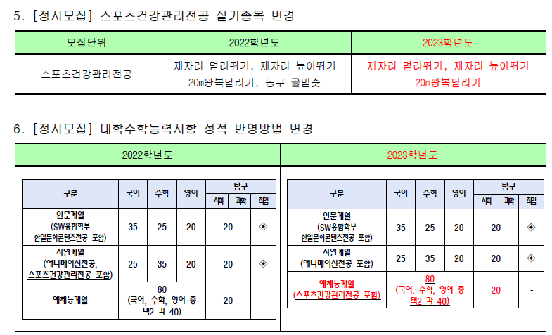 - 실기고사: 학생부교과(고교추천전형)국가안보학과, 실기/실적(실기전형)