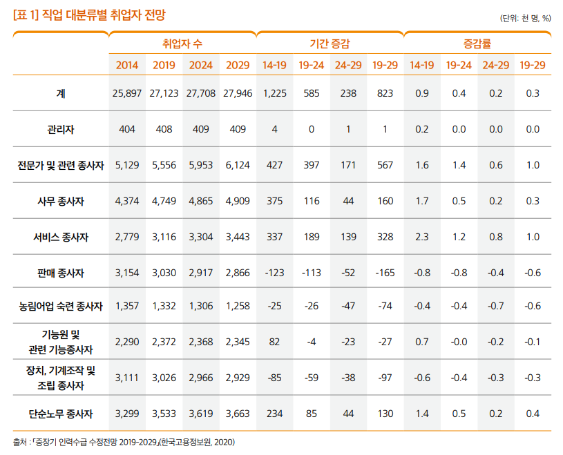 한국고용정보원은 이처럼 급변하는 직업 세계의 환경 변화에 능동적으로 대처하고 직업 및 진로개발에 도움을 드리고자 『2021 한국직업전망』을 발간하게 되었습니다. 한국직업전망은 1999년부터 격년으로 발간되었고 이번 판부터는 주요 직종을 절반으로 나누어서 매년 발간할 것입니다. 여기에는우리나라의 대표적인 직업에 대한 직업정보(하는 일, 업무환, 되는 길, 적성과 흥미 등)와 향후 10년간의 일자리 전망에 관한 종합적인 정보를 수록하고 있습니다.