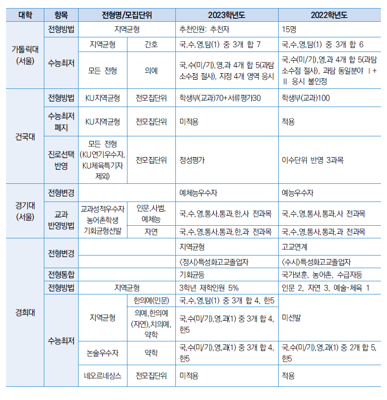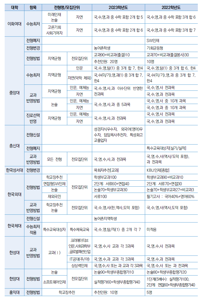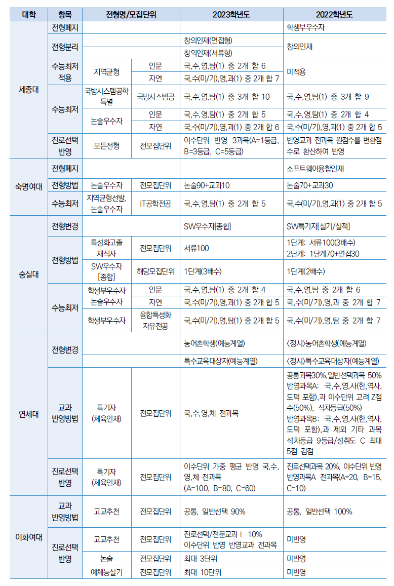2023학년도 서울지역 대입전형 전년대비 주요 변경사항
