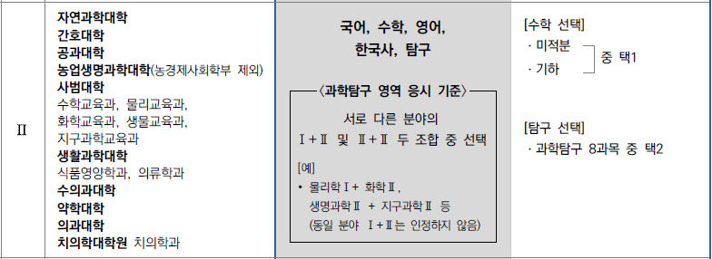 ※ 유형Ⅱ 지원자는 ‘과학탐구 영역 응시 기준’을 반드시 준수해야 함