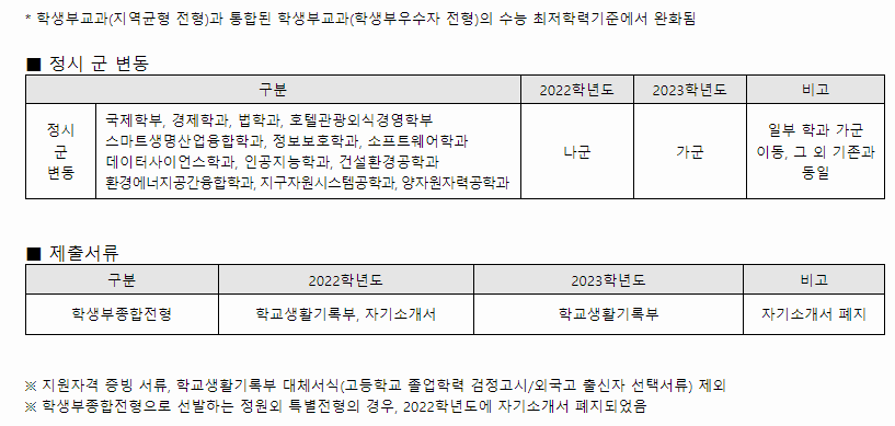 세종대학교 2023년도 주요변경사항