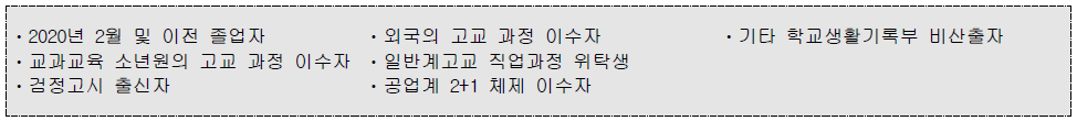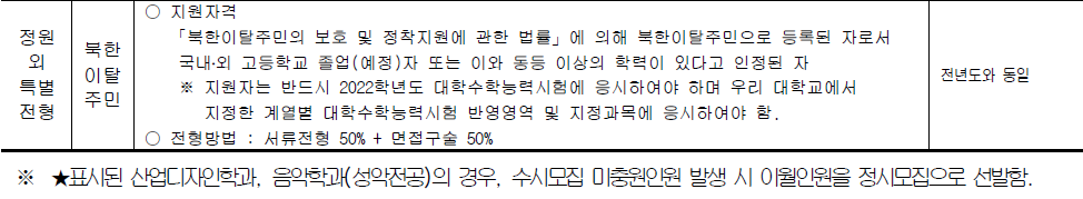 - 학생부종합전형, 정원외특별전형(농어촌학생, 특성화고교졸업자)