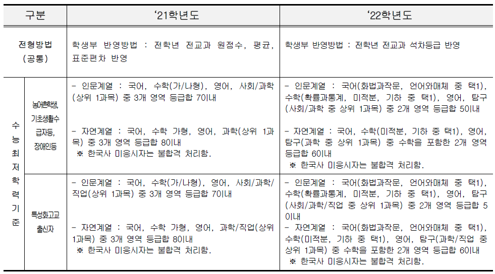 서울시립대 2021학년도 대비 2022학년도 입학전형 주요 변경사항