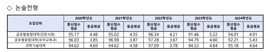 - 덕성여대 논술전형 등급컷(2020-2024년)