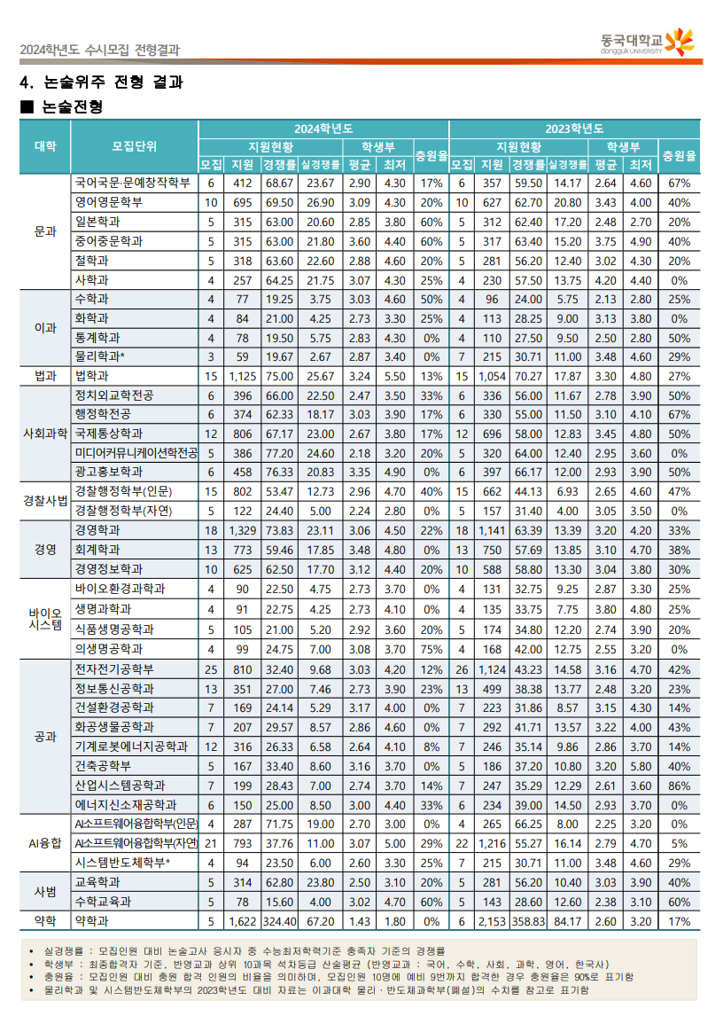 동국대학교 2024학년도 입시 분석 및 지원 전략