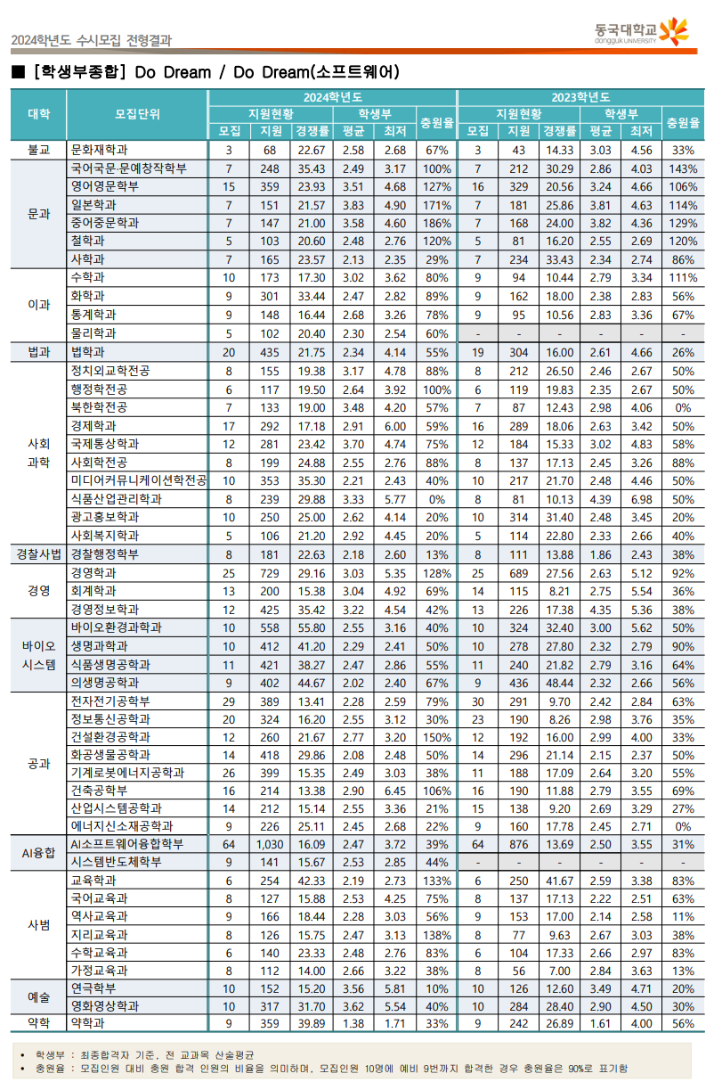 2024학년도 동국대 학생부종합 Do Dream 전형결과
