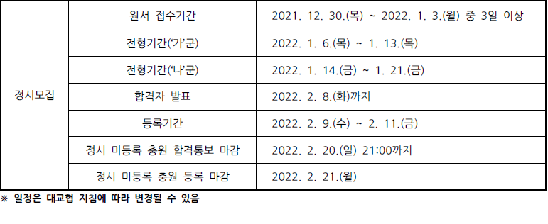 - 전 계열/모집단위 모두 한국사를 응시하여야 함