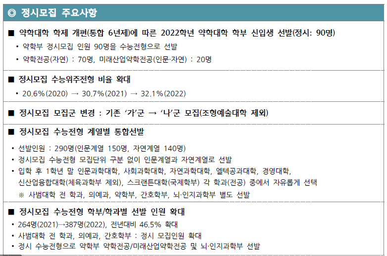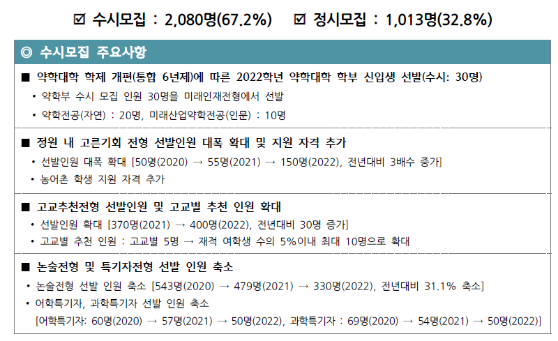 ■ 정시모집 기회균형전형(정원 외) 선발 인원 확대 [180명(2021)→184명(2022)]